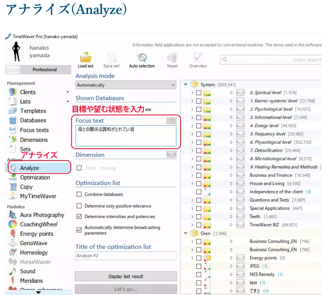 TimeWaver の最大の魅力は、クライアントの夢や目標、望む状態などをテキスト入力できることです。